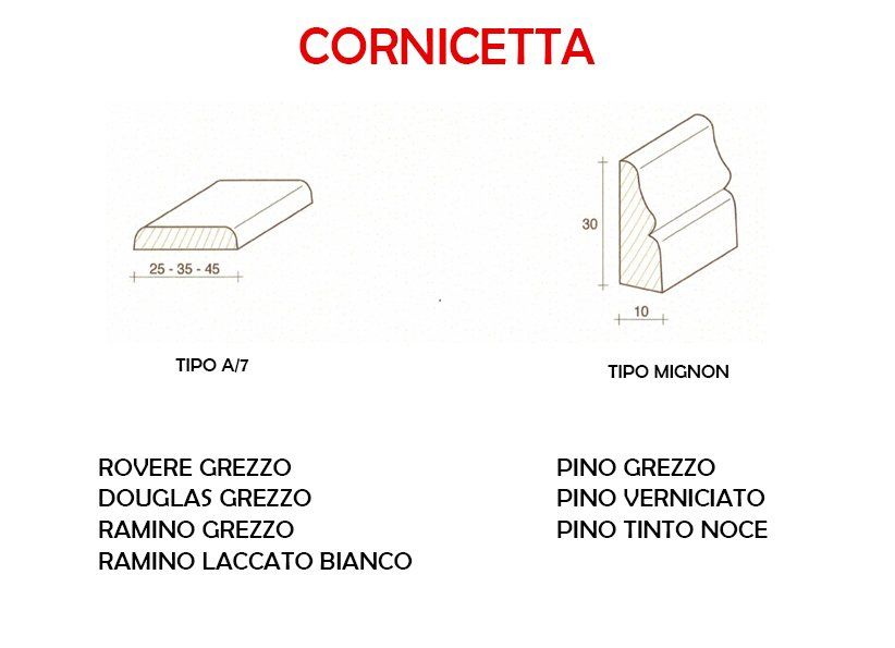 La gamma di prodotti ISAL include anche diversi modelli di profili in legno: coprifilo, cornici per porte e per finestre in legno massiccio e impiallacciato; fermavetro in rovere, douglas, pino e larice; cornicette, angolari e paraspigoli; terminale per perline; listelli in abete di varie misure; magatelli in larice; corrimano.